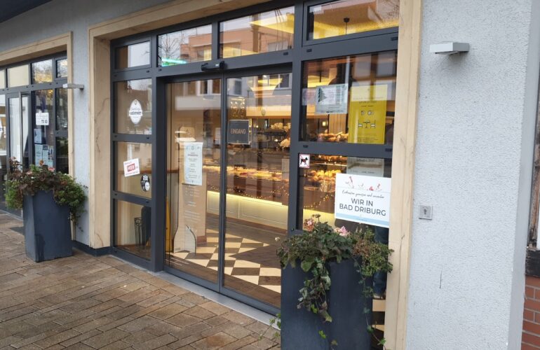 Unser zentral gelegenes Stadtcafé in Bad Driburg lädt durch eine angenehme Atmosphäre zum Verweilen ein. Ein besonders Highlight ist unter anderem unser Etageren-Frühstück mit Deinen individuell zusammengestellten Zutaten. Sitzplätze gibt es nicht nur im ansprechenden Innenbereich, sondern auch unser Außenbereich bietet Dir einen schönen Platz in der Sonne, um die Seele baumeln zu lassen. Hier kannst Du ein Stück Kuchen oder andere Leckereien genießen – sowohl alleine, als auch in Begleitung. Auch unsere kleinen Gäste haben aufgrund einer Spielecke genügend Platz zum Toben und Spielen. Falls es jedoch mal schnell gehen muss, bietet Dir ein großer Parkplatz direkt vor der Tür die Gelegenheit unsere Produkte auch auf die Hand mitzunehmen.